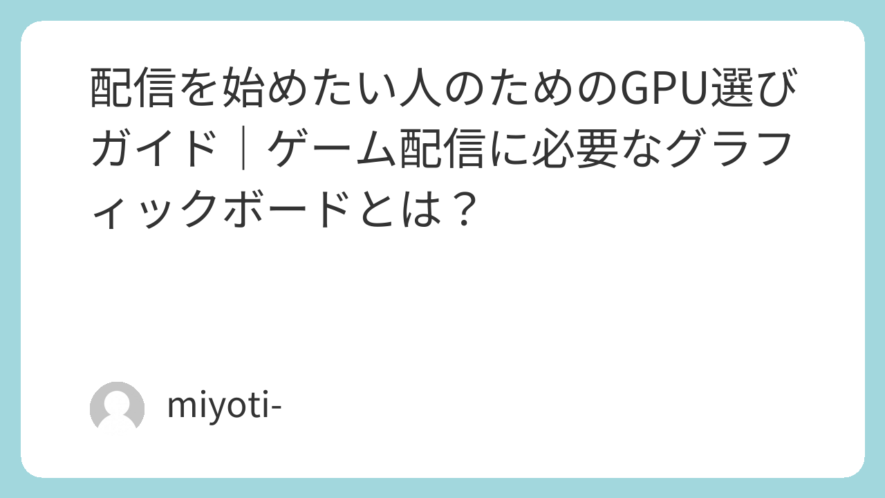 ゲーム配信を始めたいと考えたとき、多くの人が悩むのが「GPU(グラフィックボード)はどれを選べばいいのか?」という問題です。