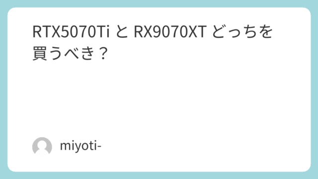 RTX5070Ti と RX9070XT どっちを買うべき?初心者向けにわかりやすく解説結論:ゲーム重視ならRTX5070Ti、コスパやVRAM重視ならRX9070XTRTX5070TiとRX9070XTで迷っている人への結論はシンプルです...