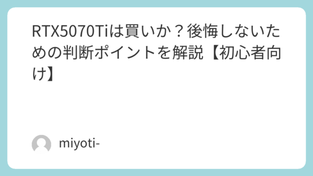 RTX5070Tiは買いか?後悔しないための判断ポイントを解説【初心者向け】